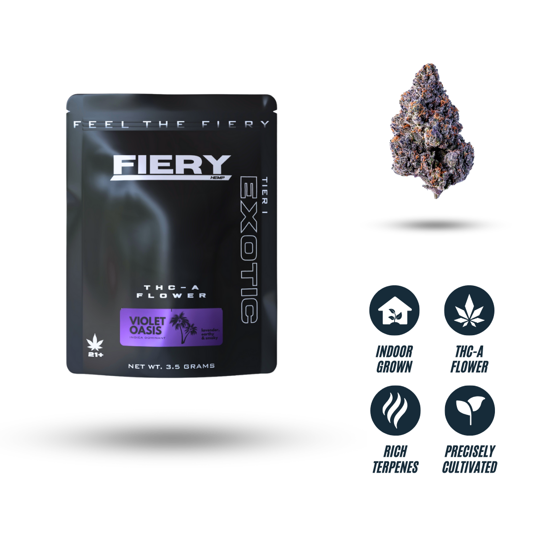 Embark on the unknown escape of Fiery’s Violet Oasis exploring an Exotic Indica blending lush lavender, deep earthy and smoky notes.